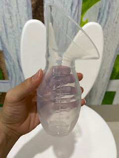 Penampakan handsfree silicon breastpump nya seperti ini ya moms. Jadi itu yang bagian atas berbentuk seperti corong, yang nantinya bisa moms tempelkan ke PD.